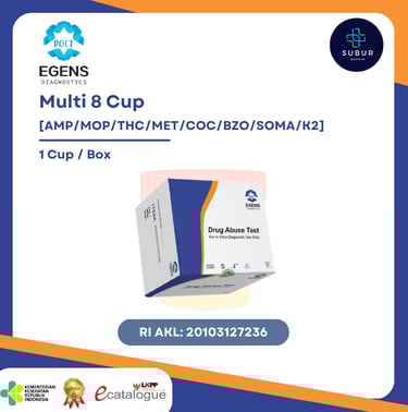 The EGENS Drug Abuse Test Cup (AMP/MOP/THC /MET/COC/BZO/SOMA) is a rapid chromatographic immunoassay for the qualitative and simultaneous detection of the seven following drugs in a variety of combinations in human urine.