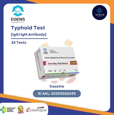 The EGENS Typhoid IgG/IgM Test is a lateral flow immunoassay for the simultaneous detection and differentiation of anti-Salmonella typhi (S. Typhi) IgG and IgM in human serum or plasma. It is intended to be used as a screening test and as an aid in the diagnosis of infection with S. Typhi. Any reactive specimen with the Typhoid IgG/IgM Test must be confirmed with alternative testing methods.