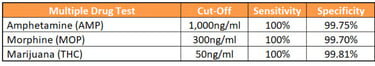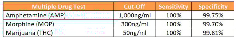 The One Step Multi-Drug Screen Test is a lateral flow chromatographic immunoassay for the qualitative detection of multiple drugs and drug metabolites in urine at the following cut-off concentrations:
