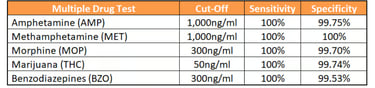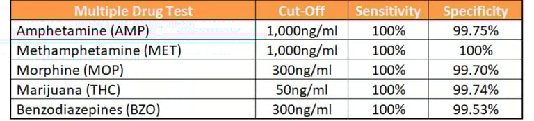 The One Step Multi-Drug Screen Test is a lateral flow chromatographic immunoassay for the qualitative detection of multiple drugs and drug metabolites in urine at the following cut-off concentrations: