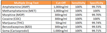 The One Step Multi-Drug Screen Test is a lateral flow chromatographic immunoassay for the qualitative detection of multiple drugs and drug metabolites in urine at the following cut-off concentrations: