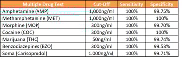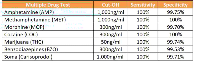 The One Step Multi-Drug Screen Test is a lateral flow chromatographic immunoassay for the qualitative detection of multiple drugs and drug metabolites in urine at the following cut-off concentrations: